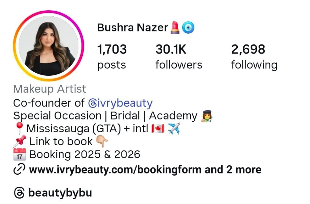 BeautybyBu, led by Bushra, is well known among Brampton brides for providing a variety of bridal beauty services, including mehndi for wedding events.