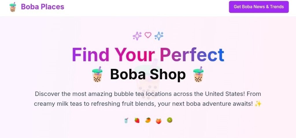 BobaPlaces is an online directory focused exclusively on bubble tea and boba tea locations across the United States.