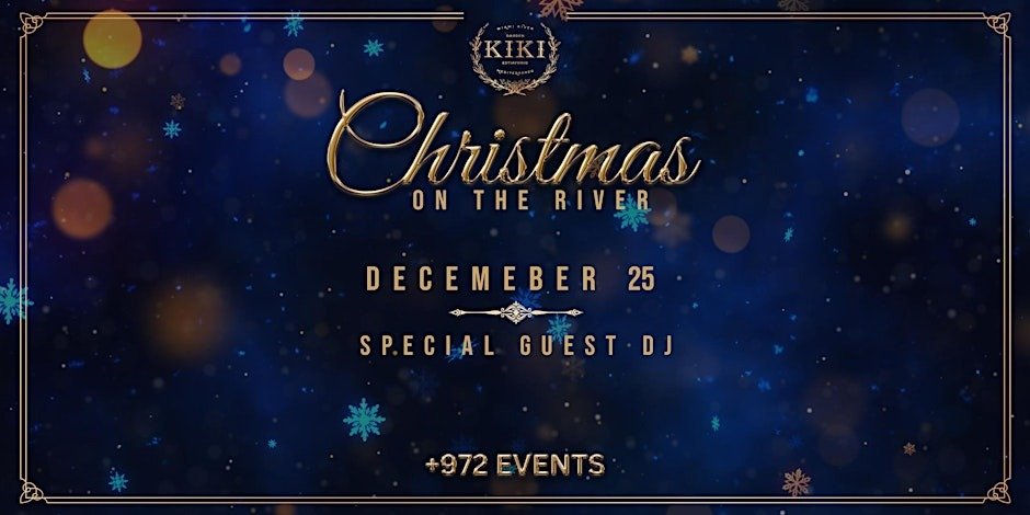 Description: Celebrate Christmas night in style at Kiki on the River with an upscale waterfront party hosted by +972 Events. Enjoy high-energy music from a special guest DJ, festive cocktails, and an elegant holiday crowd in one of Miami’s most iconic nightlife venues. Expect holiday ambiance by the river, premium dining, and a lively party atmosphere. This 21+ in-person event features paid parking and a no-refund policy.