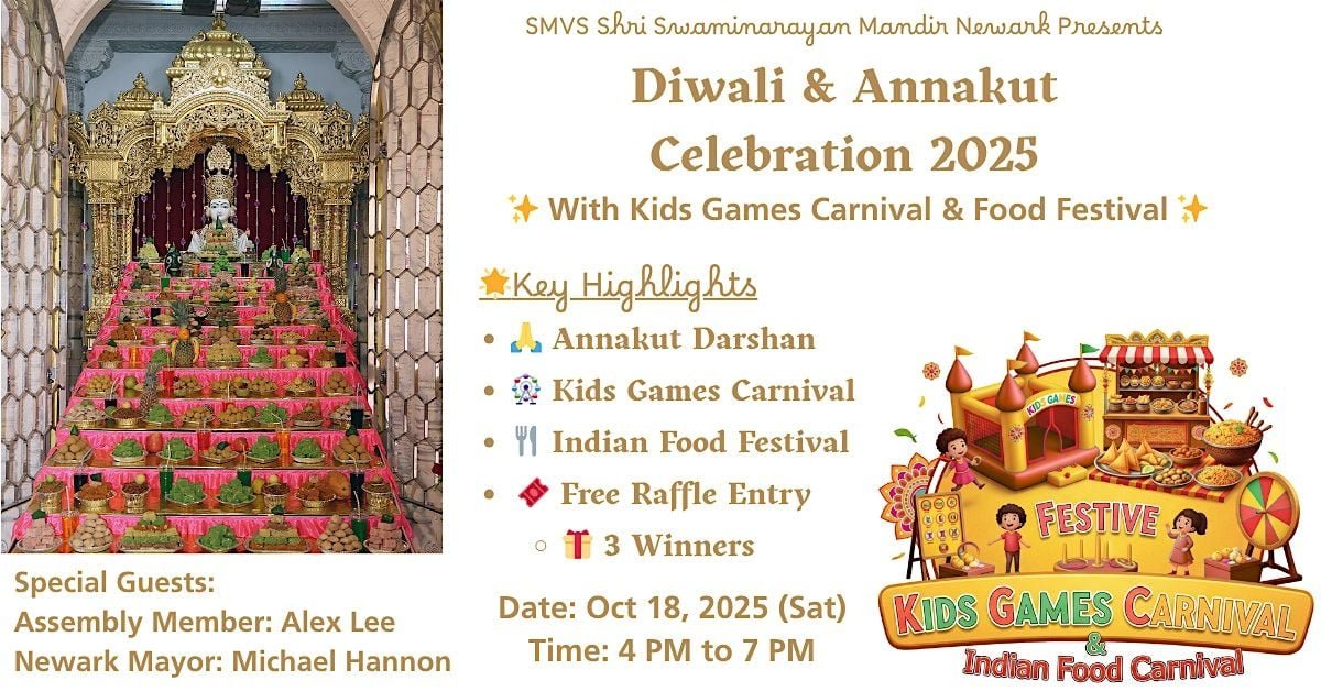 Mission & Tradition — This event ties into the SMVS tradition of Diwali & Annakut Utsav held annually at the Newark temple, reinforcing spiritual values and communal harmony.