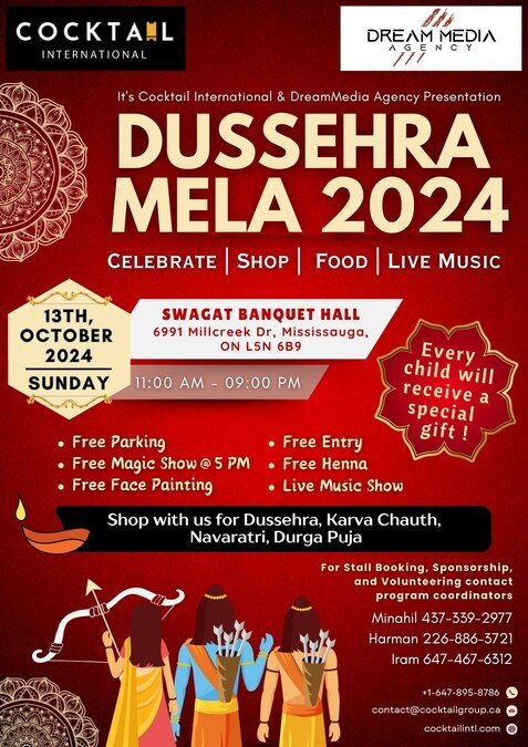 Celebrate the vibrant spirit of Dussehra at one of the GTA’s biggest cultural gatherings. The event brings together families and communities for a day filled with music, dance, traditional performances, and delicious food. Visitors can explore shopping booths, enjoy children’s activities, and experience the festive atmosphere with free parking and open entry for all.