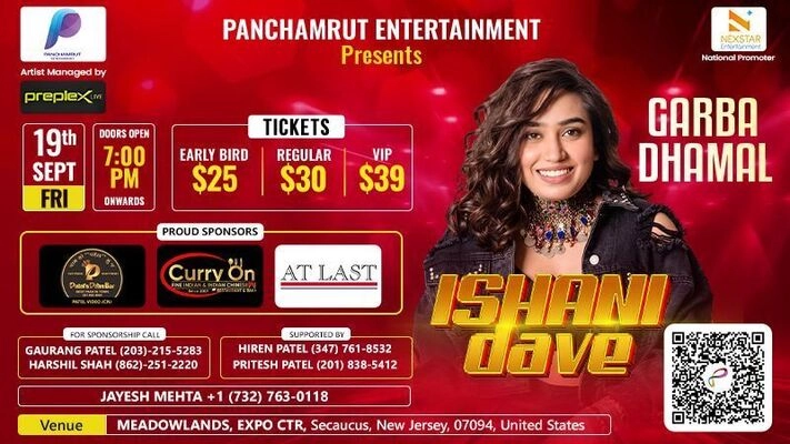 Because Ishani Dave carries significant popularity in the Gujarati and Indian community circuits, early ticket purchase is recommended to avoid sell-outs.