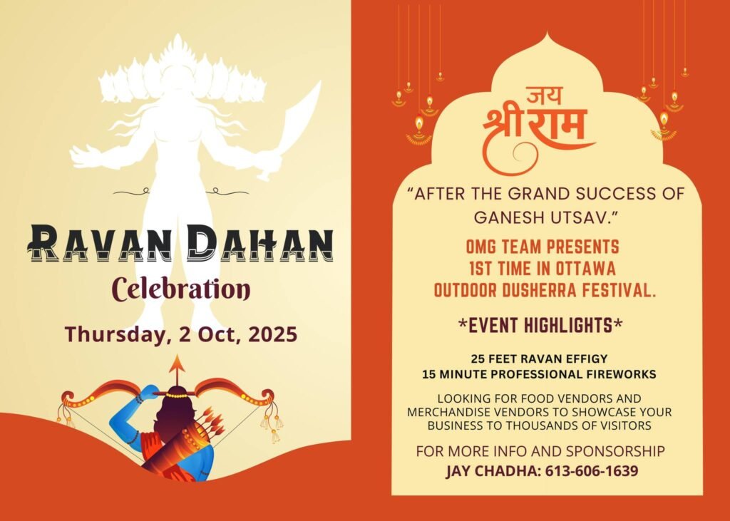 Be part of history at Ottawa’s first outdoor Dussehra Festival! This grand community celebration features a live Ram Leela performance, the burning of a towering 25-ft Ravan effigy, and a dazzling 15-minute professional fireworks show. Families and friends can enjoy delicious Indian food, vibrant vendor stalls, and cultural entertainment, creating an unforgettable festive evening in the nation’s capital.