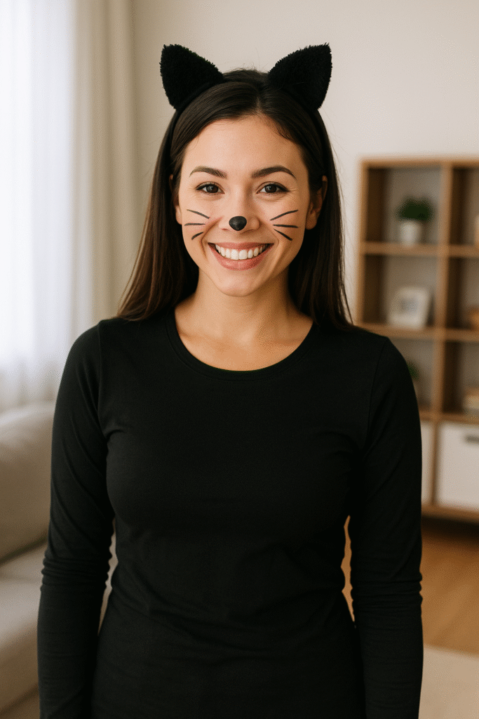 Cats are another easy option. Just wear black, add some cat ears, draw a few whiskers and you are ready. You can add a tail or gloves if you want to make it more fun. It is playful, everyone gets it, and honestly, people love a good cat costume. The best part is you can find ears or tails anywhere so there is no stress.