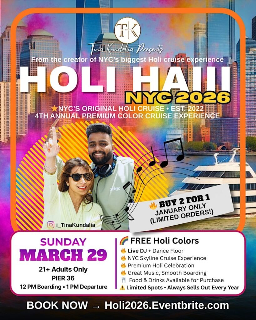 Holi Haiii NYC 2026 | March 29 | NYC’s #1 Holi Cruise Party