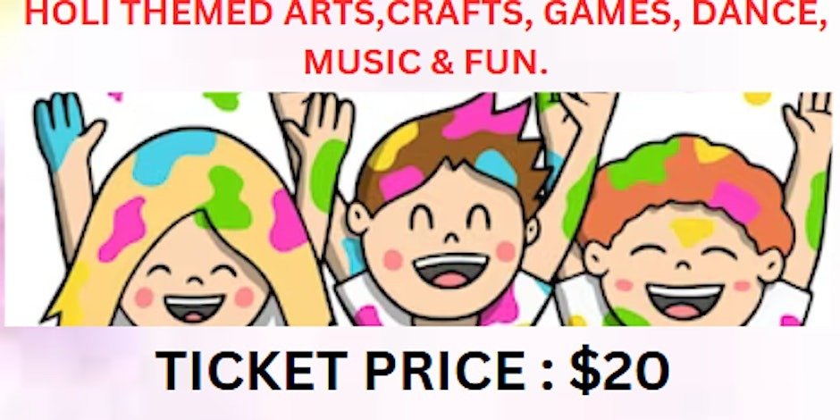 Description: A fun-filled Holi celebration designed just for kids with arts, crafts, games, music, and dance. Enjoy light snacks and playful Holi vibes in a safe and engaging environment. Parents can join during tare welcome tolast 15 minutes to share in the colorful fun. A perfect way for children to experience the festival of colors creatively and joyfully.