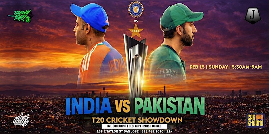 Description: Join fellow cricket fans at Jack’s, San Jose, for the epic India vs. Pakistan T20 World Cup showdown! Cheer for your favorite team on multiple TVs with indoor and fully covered outdoor seating. Enjoy delicious Indian appetizers, drink specials, and a lively, electrifying atmosphere. Perfect for friends, families, and cricket enthusiasts looking for a fun morning. Don’t miss this thrilling watch party experience in the heart of San Jose!