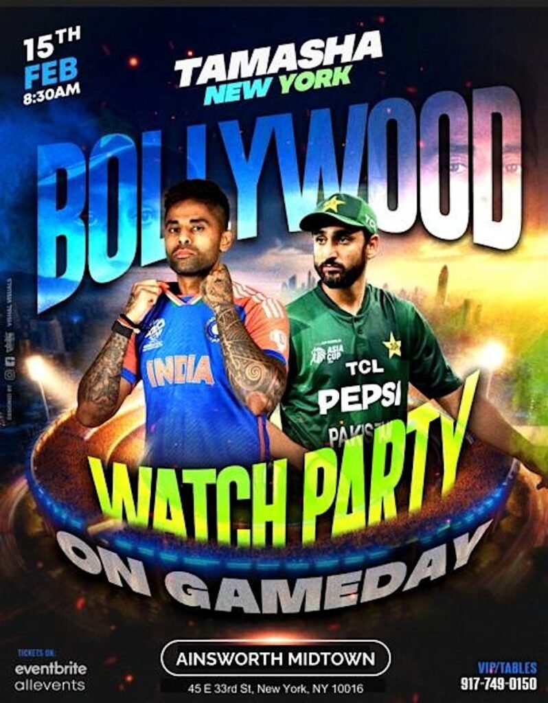 Description: Celebrate the biggest cricket match of 2026 with fellow fans in NYC! Watch India vs. Pakistan on massive screens, cheer for your team, and soak in the electric stadium-like energy. Enjoy Bollywood beats from DJ Browny, live dhol performances, and delicious desi food and drinks. Dance, celebrate, and experience unforgettable cricket highs with 100s of fans. A thrilling watch party combining cricket fever with NYC nightlife vibes.