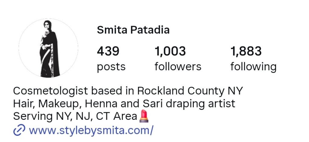 She is particularly known for expert sari draping and dupatta setting techniques. Her services include bridal henna and threading alongside makeup.