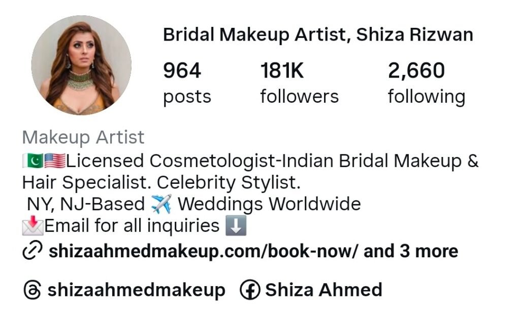 Shiza Ahmed is a luxury bridal makeup artist serving high-end weddings in Edison and nearby venues.