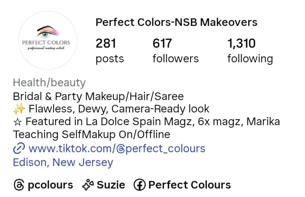 She is frequently chosen for Gujarati and North Indian wedding looks. Her approach emphasizes traditional accuracy in styling. She maintains a steady presence in Edison’s bridal service network.