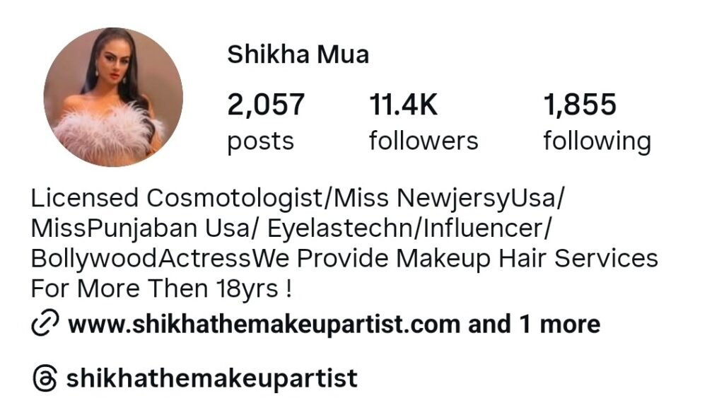 Shikha operates from an Edison studio and focuses on natural yet polished bridal finishes.