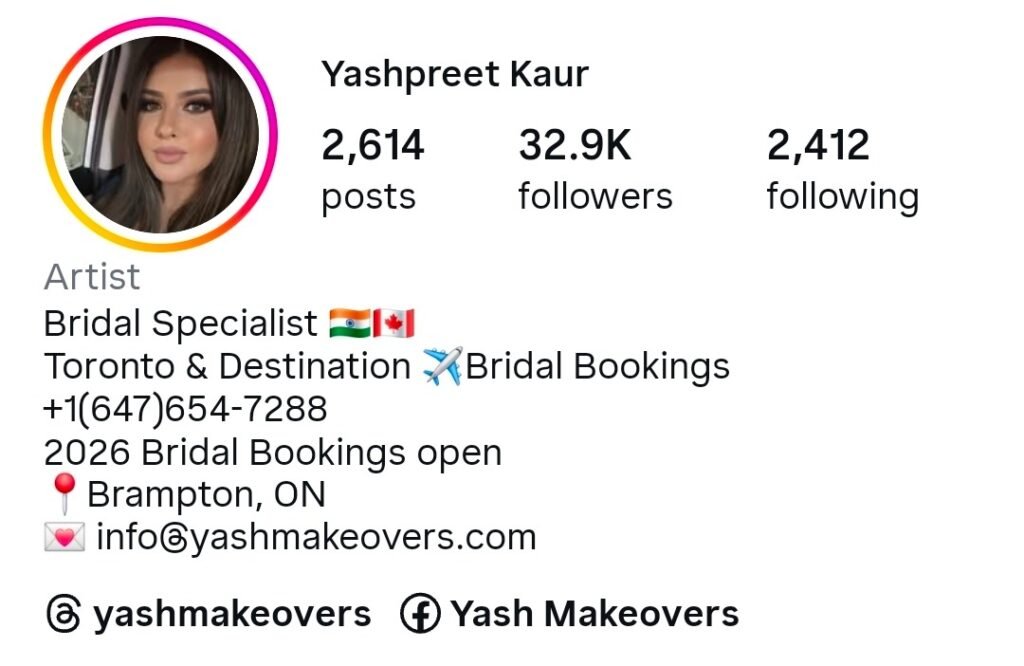 Choosing the right artist ensures flawless skin, culturally appropriate styling, and confidence on the wedding day. Below is a list of top-rated bridal makeup artists serving Brampton and the surrounding GTA, each known for expertise, professionalism, and a personalized touch.
