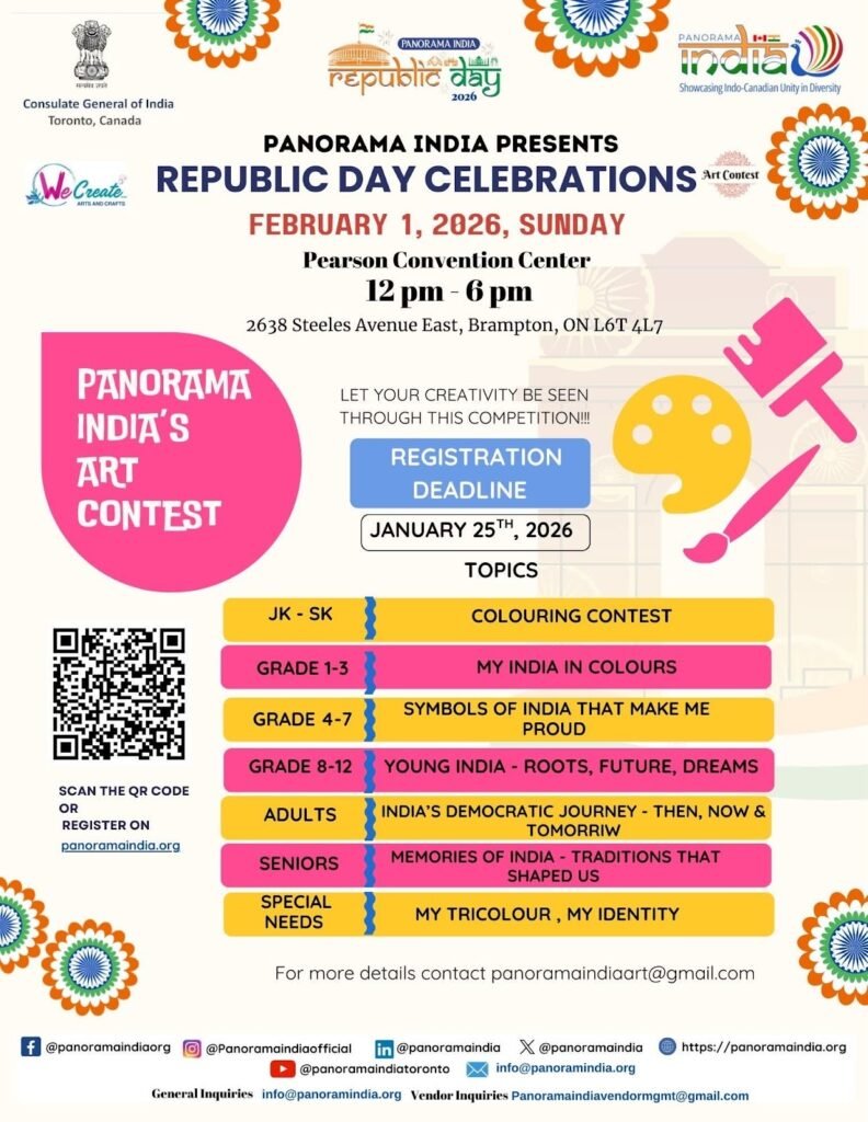 Republic Day in Canada is a celebration of India’s heritage, democracy, and cultural diversity. Across cities from Toronto to Brampton, Indo-Canadian communities organize events that include flag-hoisting, music, dance, and family-friendly activities. These celebrations provide an opportunity for people of all ages to connect with their culture and learn about India’s history.