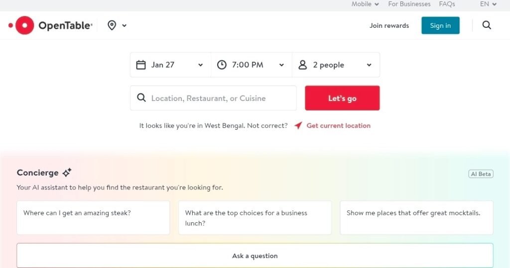 OpenTable allows Indian restaurants to create free listings with reservation options, menus, and contact information. The platform is widely used for diners looking to book tables online.