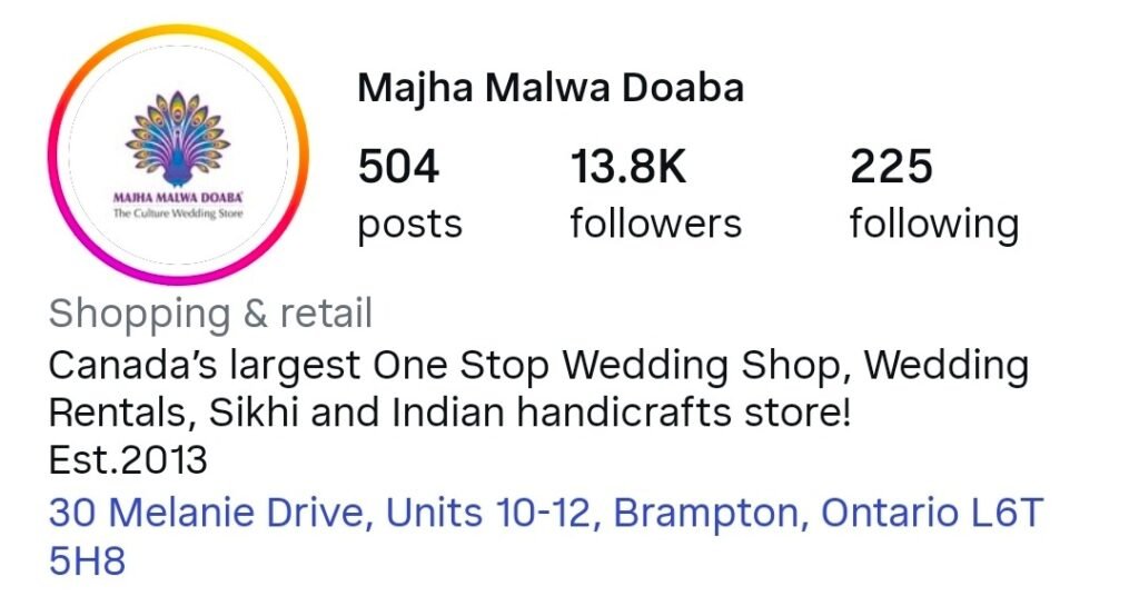 Majha Malwa Doaba is one of North America’s largest retail and service hubs for Indian wedding items. The business provides both decor services and a wide selection of wedding accessories for traditional Punjabi ceremonies.
