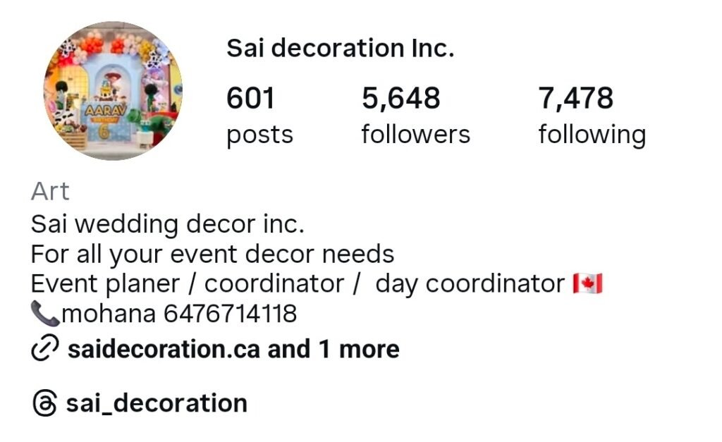 Sai Decoration is a specialist in Tamil and South Asian wedding decor and is frequently associated with events at the Grand Cinnamon Banquet Hall.