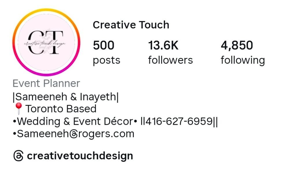 Creative Touch Design is a boutique decorator led by Sameeneh and Inayeth, known for high-end wedding setups.