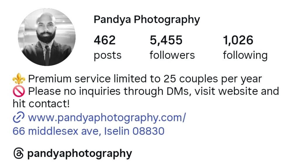 Pandya Photography is led by Abhi Pandya and operates directly out of Edison with a strong focus on South Asian weddings.