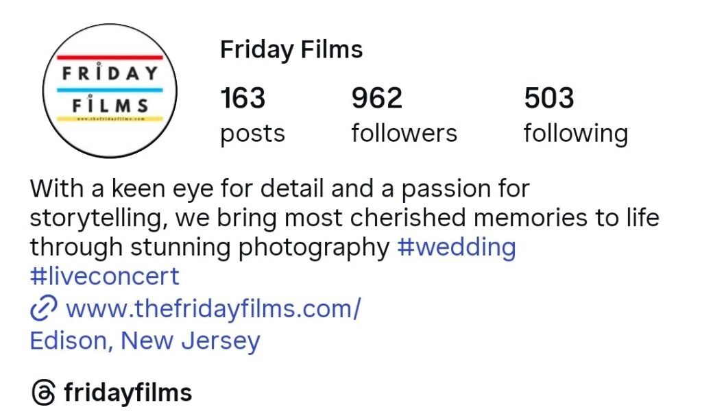 Friday Films is headquartered in Edison and led by Hemant M. Pandya, specializing in cinematic wedding storytelling.