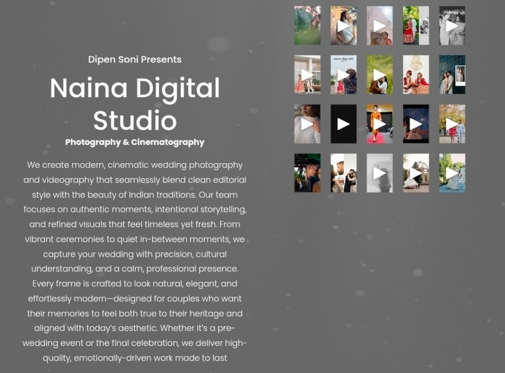Currently led by Dipen, the studio specializes in modern cinematic wedding photography with a blend of editorial-style portraits.