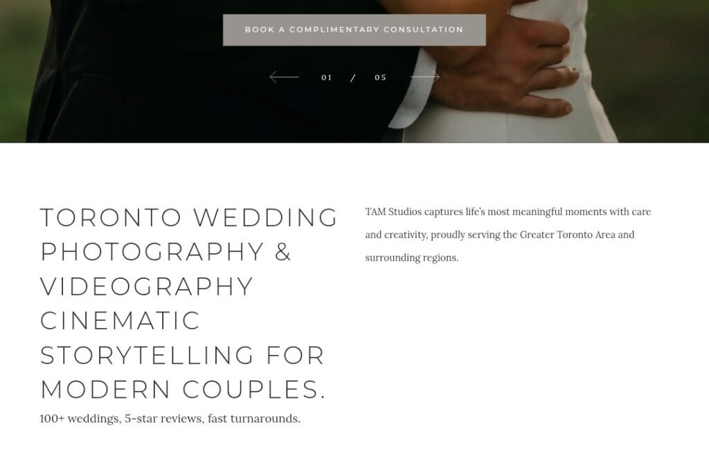 TAM Studios, formerly known as KMT Studios, specializes in fine art wedding photography with a modern and candid aesthetic. The studio is particularly known for its fast one-month delivery guarantee for professionally edited wedding photos.