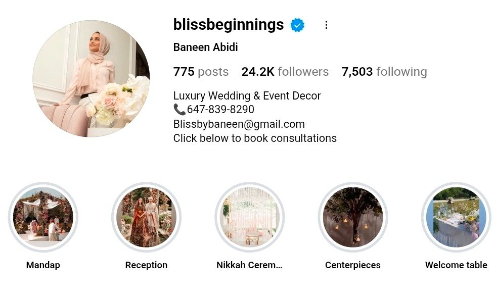 Bliss Beginnings, led by Baneen, combines wedding planning with high-end floral and decor services.
