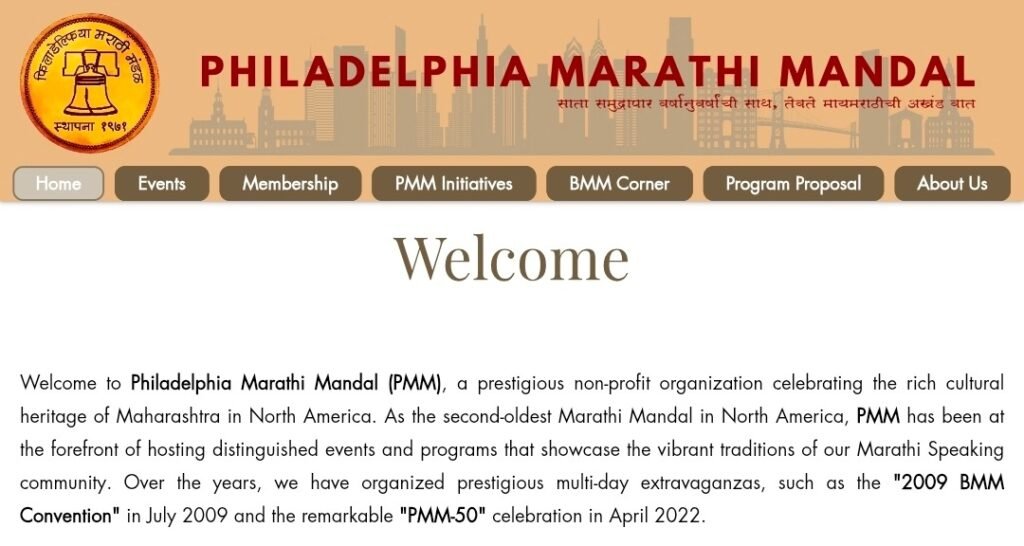 Philadelphia Marathi Mandal (PMM) is one of the oldest Marathi organisations in North America and publishes detailed information about local community events. Its listings include Ganesh festivals, music concerts, dance performances, and seasonal gatherings for youth and adults.