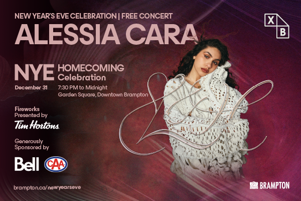 Description: Celebrate New Year’s Eve in downtown Brampton with a spectacular outdoor concert headlined by Alessia Cara, who will also be inducted into Brampton’s Arts Walk of Fame. Enjoy food vendors, a vibrant 10-minute firework display at midnight, and a lively community atmosphere. Perfect for friends and family to welcome 2026 together.