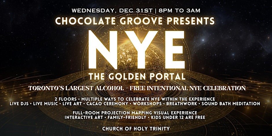 Description: Welcome 2026 at Canada’s largest alcohol-free New Year’s Eve celebration in a stunning, multi-floor venue. Experience ecstatic dance, live DJs and musicians, cacao ceremony, breathwork, meditation, workshops, and immersive golden projection mapping. Choose between a high-energy dance temple downstairs or a calm, introspective midnight sound bath upstairs. A heart-centred, inclusive gathering focused on intention, connection, and conscious celebration.