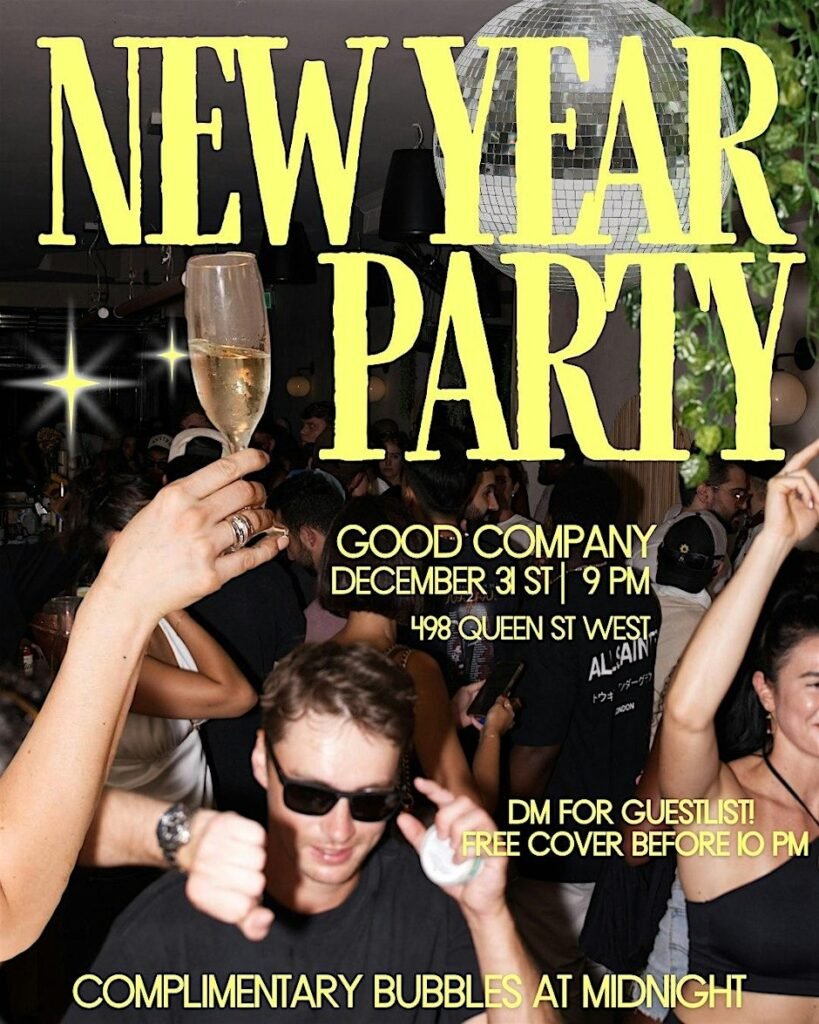 Description: Ring in the New Year with great vibes, music, and company at Good Company Toronto. Enjoy a lively night of dancing to the sounds of DJ Cheech and a crowd ready to celebrate together. Complimentary bubbles add a festive touch as the countdown to 2026 begins. A relaxed yet energetic New Year’s Eve party perfect for celebrating with friends.