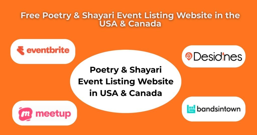 Poetry and shayari events are an essential part of North America’s cultural scene, connecting artists with engaged audiences. Free online platforms like DesiDines, Eventbrite, and AllEvents.in, Meetup, Bandsintown, DoStuff, Vivid Seats, Dice, and BandsForHire allow performers, venues, and organizers to promote their events, build visibility, and attract new audiences.