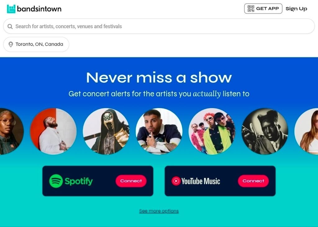 Bandsintown helps performers gain visibility across cities and reach audiences actively seeking live entertainment.