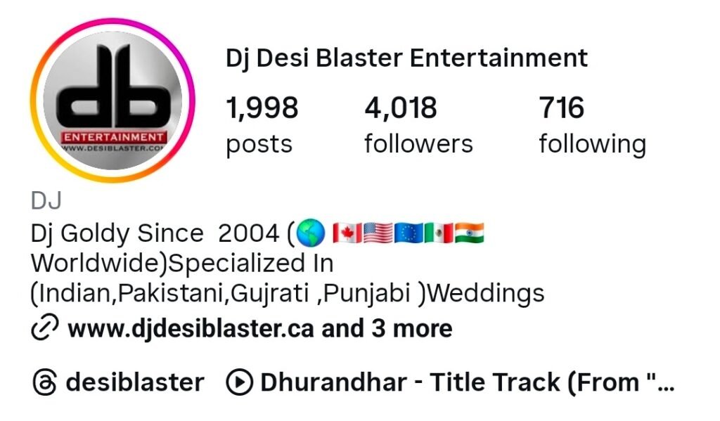 Dj Desi Blaster Entertainment is led by DJ Goldy and has around 16 years of experience in the South Asian wedding industry.