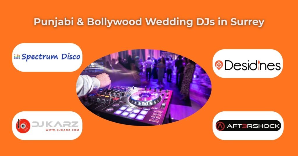 Below are some of the top Punjabi & Bollywood wedding DJs and DJ services recommended for weddings in and around Surrey, based on local listings, professional profiles, and verified online presence.
