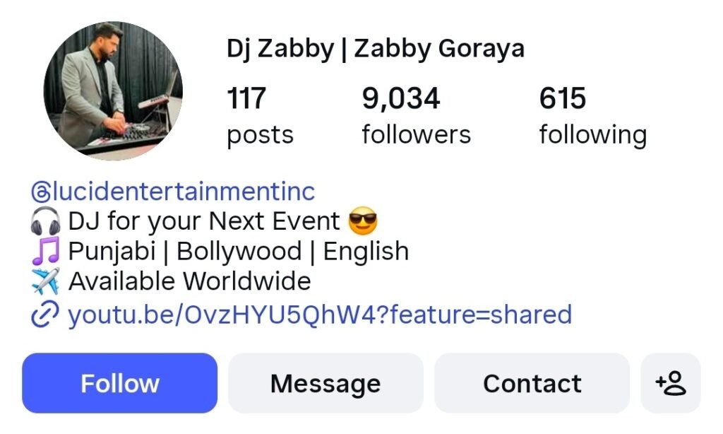 DJ Zabby (Zabby Goraya) is a popular DJ in Surrey and the Lower Mainland with a strong Instagram following and reputation for live performance energy.