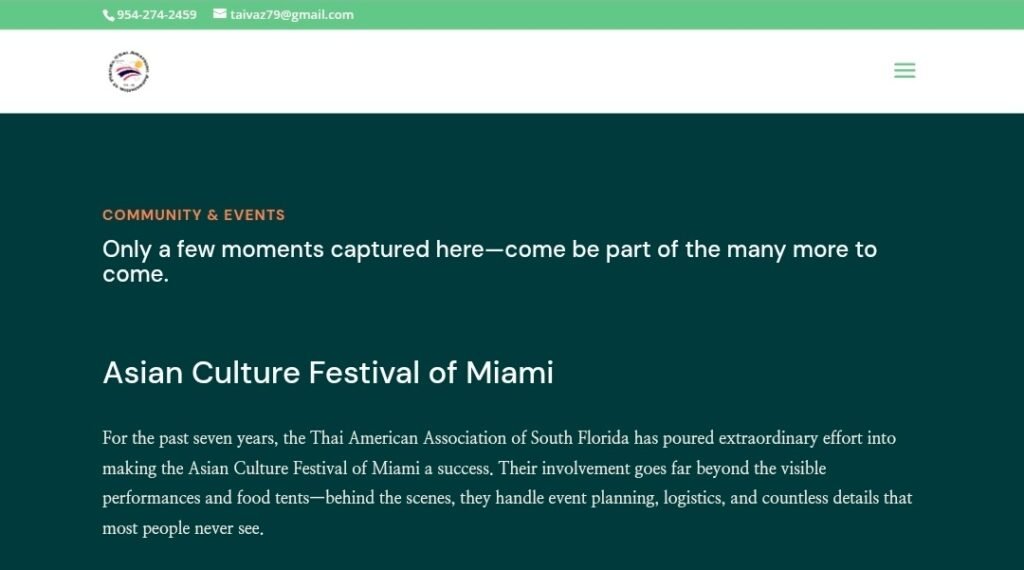 The Thai American Association of Florida regularly contributes to public cultural celebrations, including Songkran (Thai New Year) and other heritage-focused events, in collaboration with local community partners.